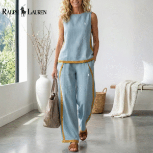 Some outfits do the work for you — and the RL® Heritage Linen Sleeveless Two-Piece Set is exactly that. The sleek sleeveless top paired with the wide-leg trouser creates a head-to-toe look that feels as polished as it does effortless. Designed for the modern woman who moves through her day with grace and intention, this set is your shortcut to looking put-together without even trying.